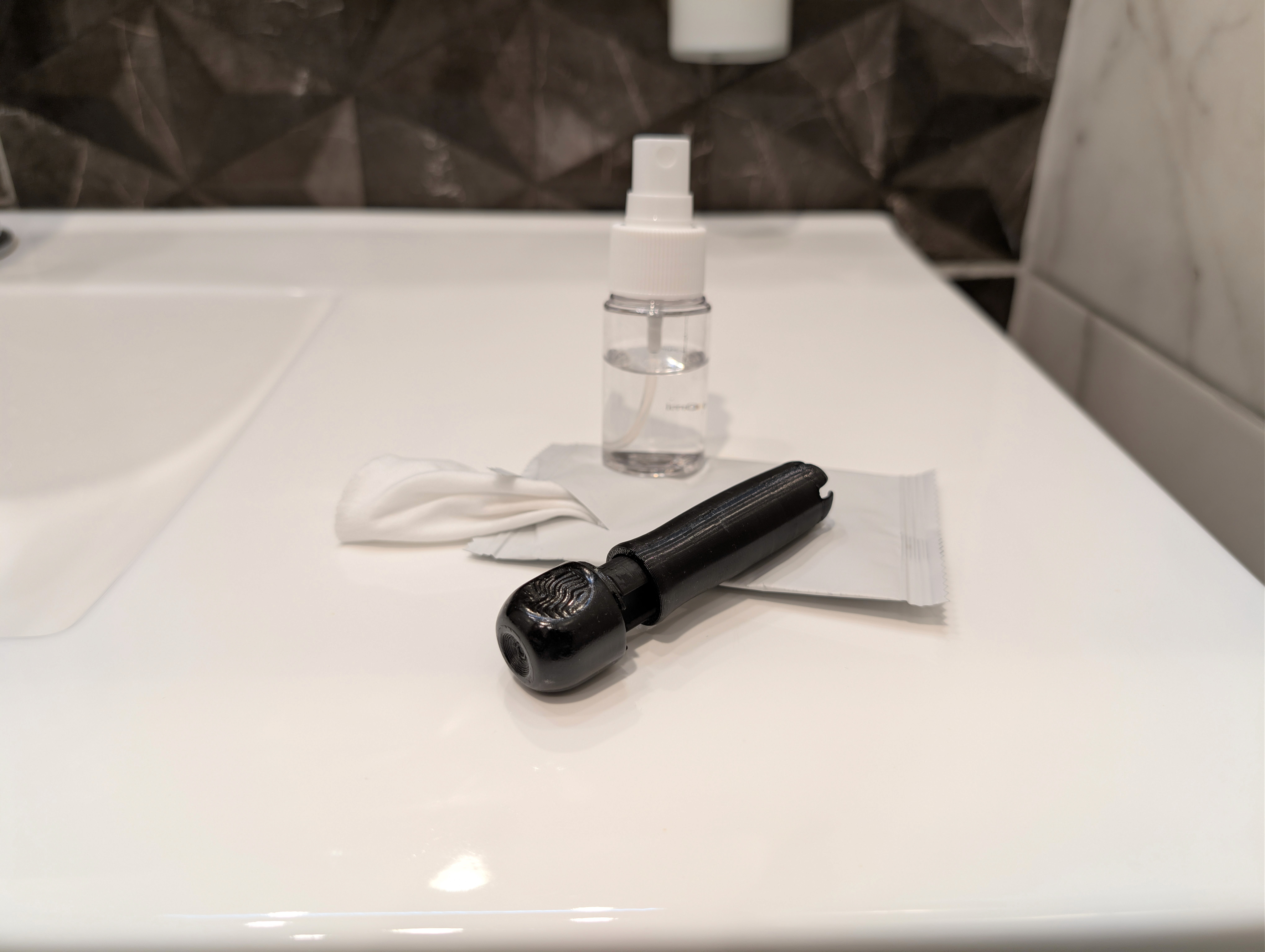 If water isn’t available, use a tissue, the antiseptic spray or wipe from the cleaning kit. For a deeper clean, wash all parts with mild soap & water. No boiling needed!
